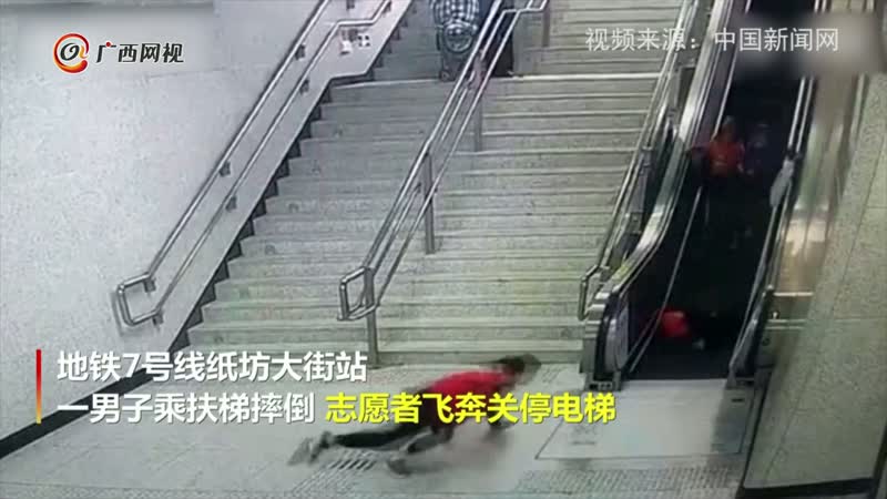 为救乘客 地铁志愿者摔倒后立刻爬起关停电梯