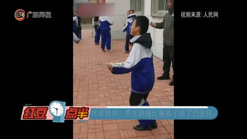 体育精神!男生跳绳比赛裤子掉了仍坚持