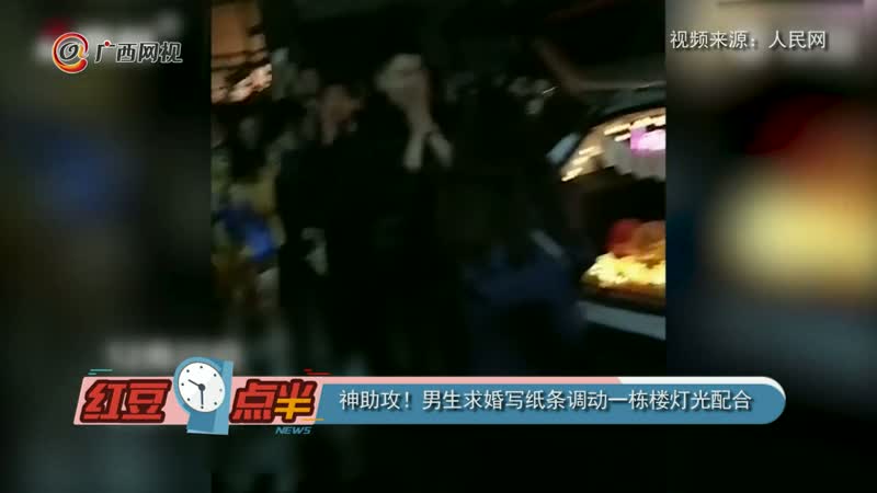 神助攻!男生求婚写纸条调动一栋楼灯光配合