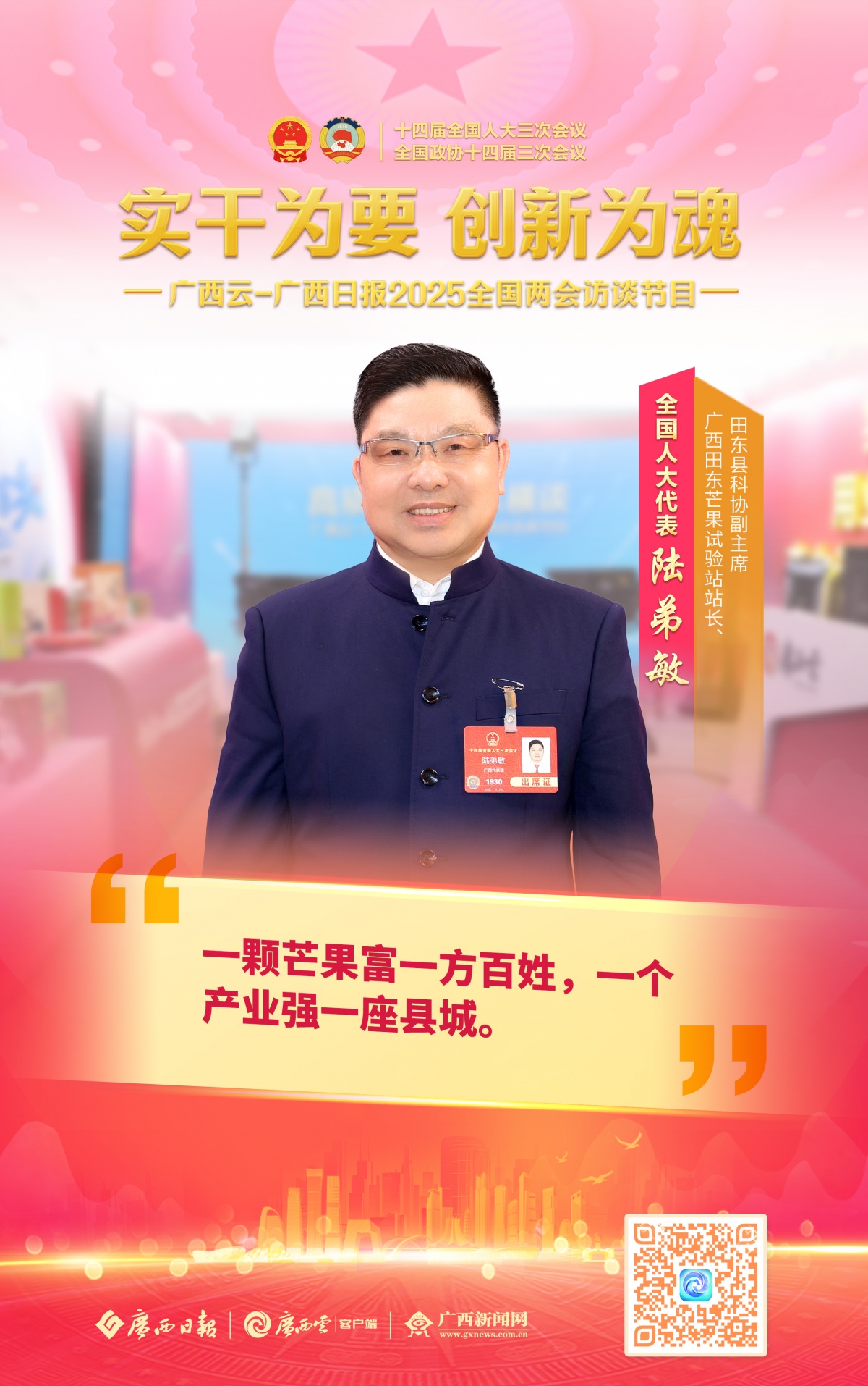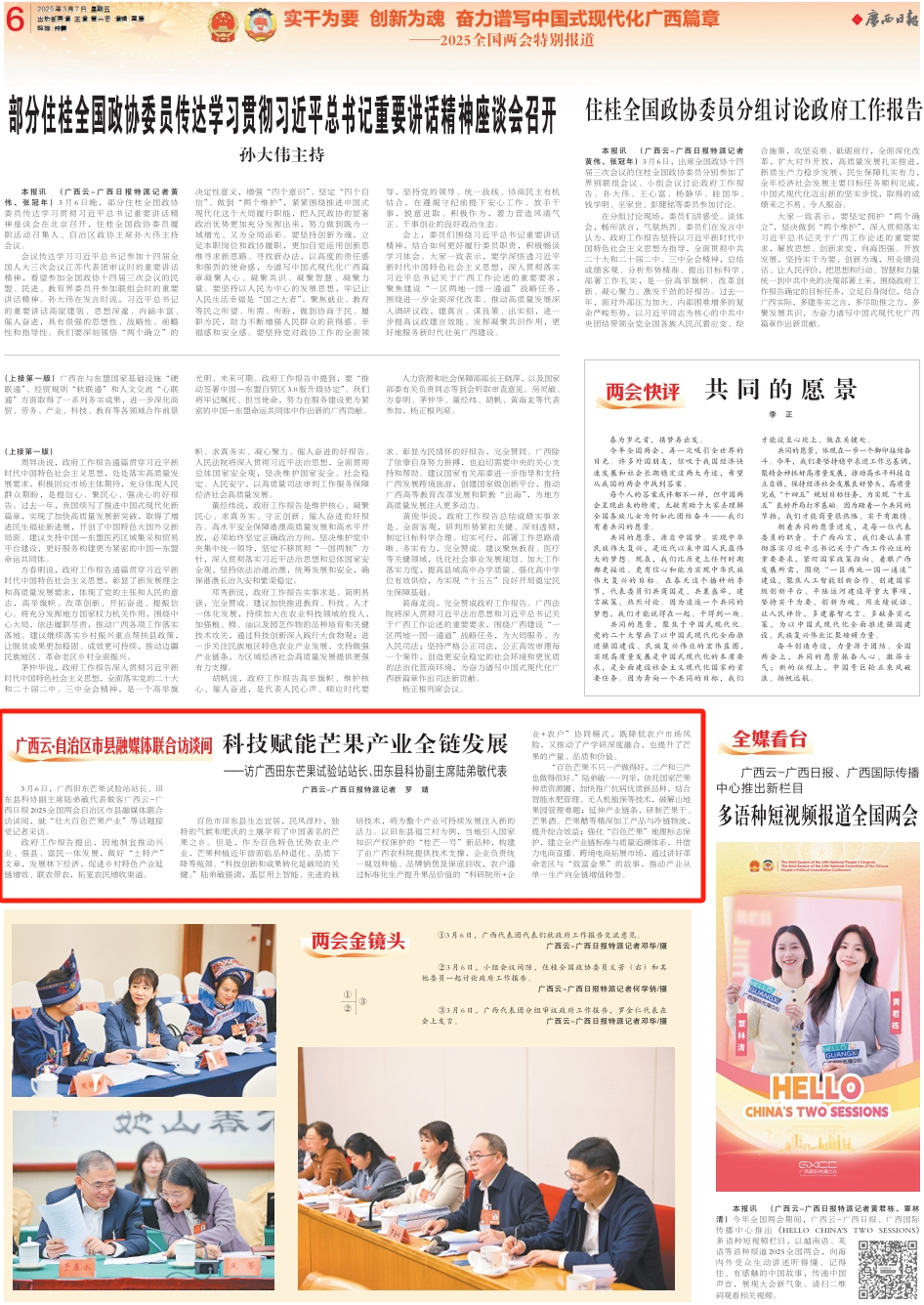 2025全国两会期间,广西云-广西日报推出访谈节目《实干为要 创新为魂》,邀请全国人大代表、全国政协委员做客访谈间,畅谈“强实干、抓创新”的决心,共话广西各地新面貌、新变化。