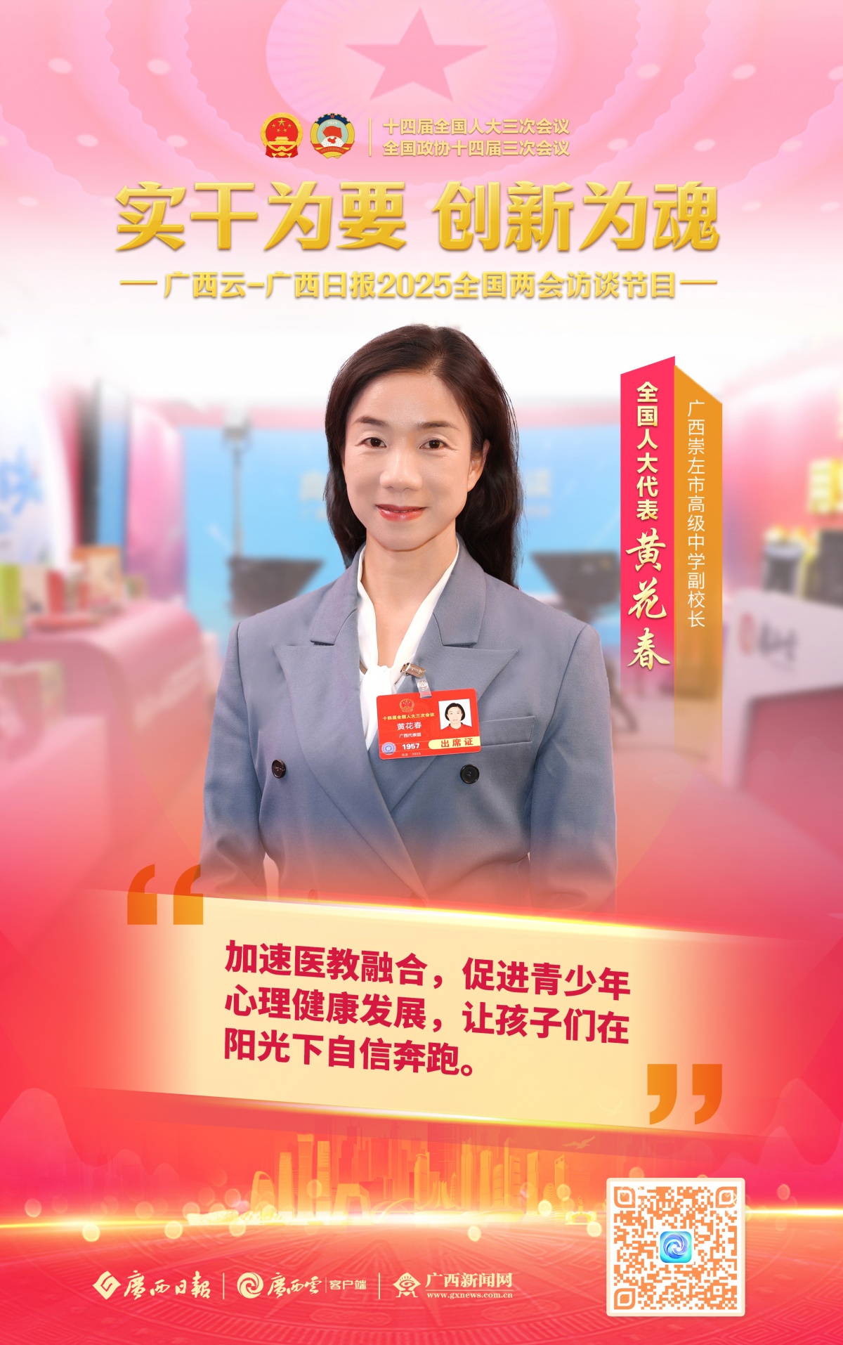 2025全国两会期间,广西云-广西日报推出访谈节目《实干为要 创新为魂》,邀请全国人大代表、全国政协委员做客访谈间,畅谈“强实干、抓创新”的决心,共话广西各地新面貌、新变化。