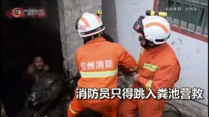 两头肥猪太重掉粪池 消防员跳粪池营救