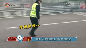 路政人员高速路上滑冰亲测路况