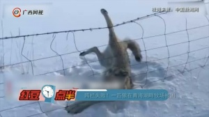 跨栏失败!一匹狼在青海湖畔牧场被困