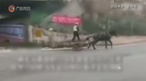 交警赶马车上路姿势娴熟引人围观