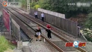 太危险!广西两名18岁女孩坐铁轨拍照