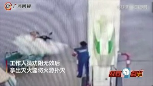 男子加油站故意抽烟 被工作人员拿灭火器追着喷!